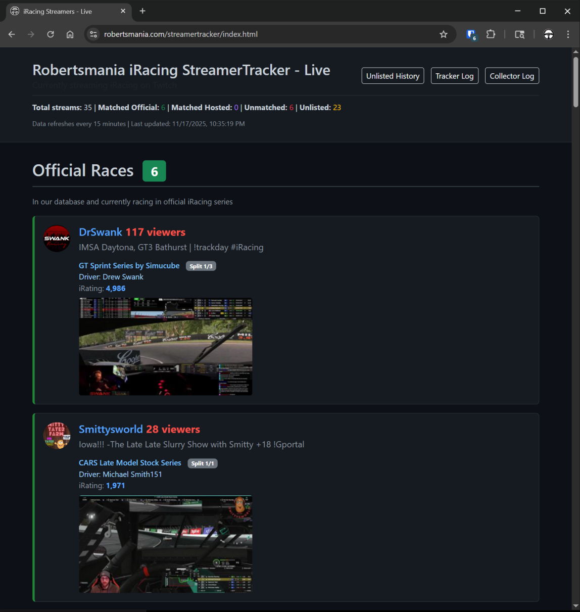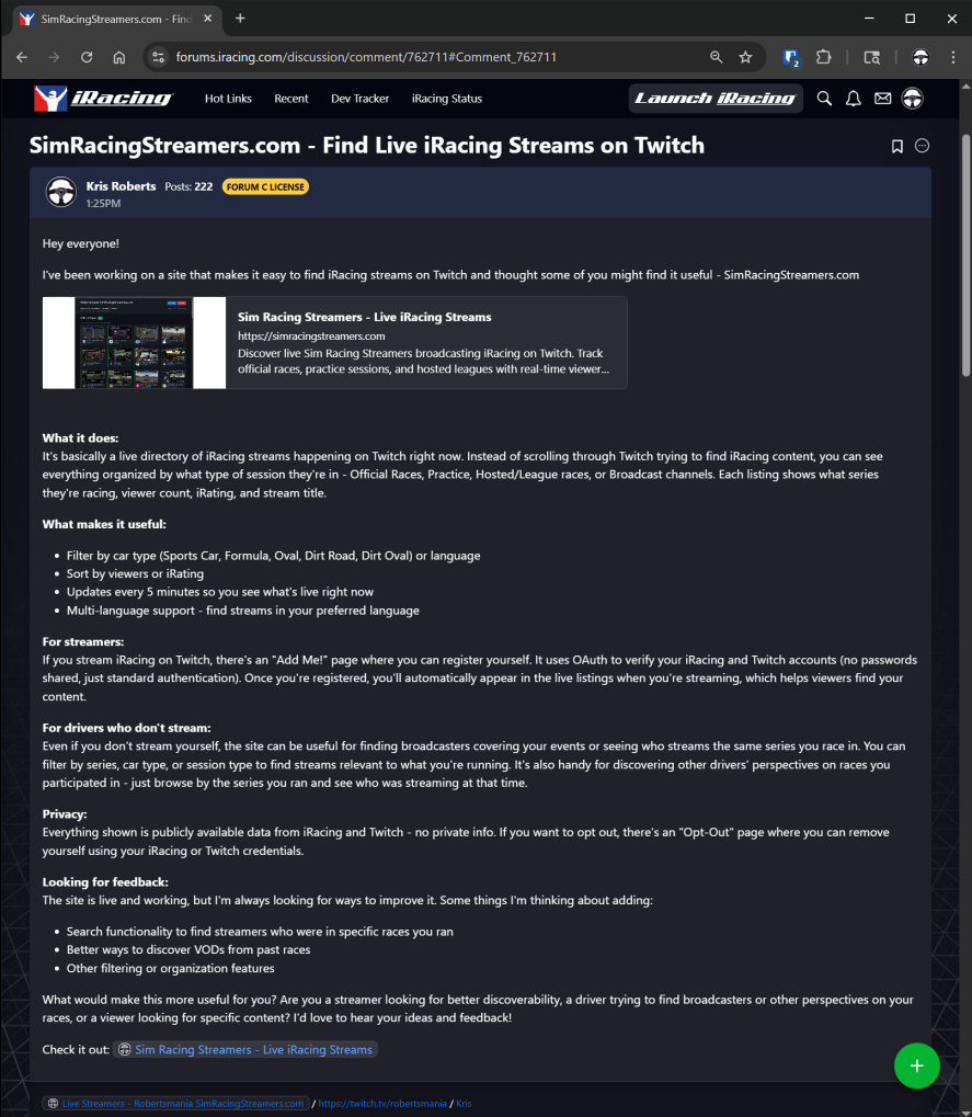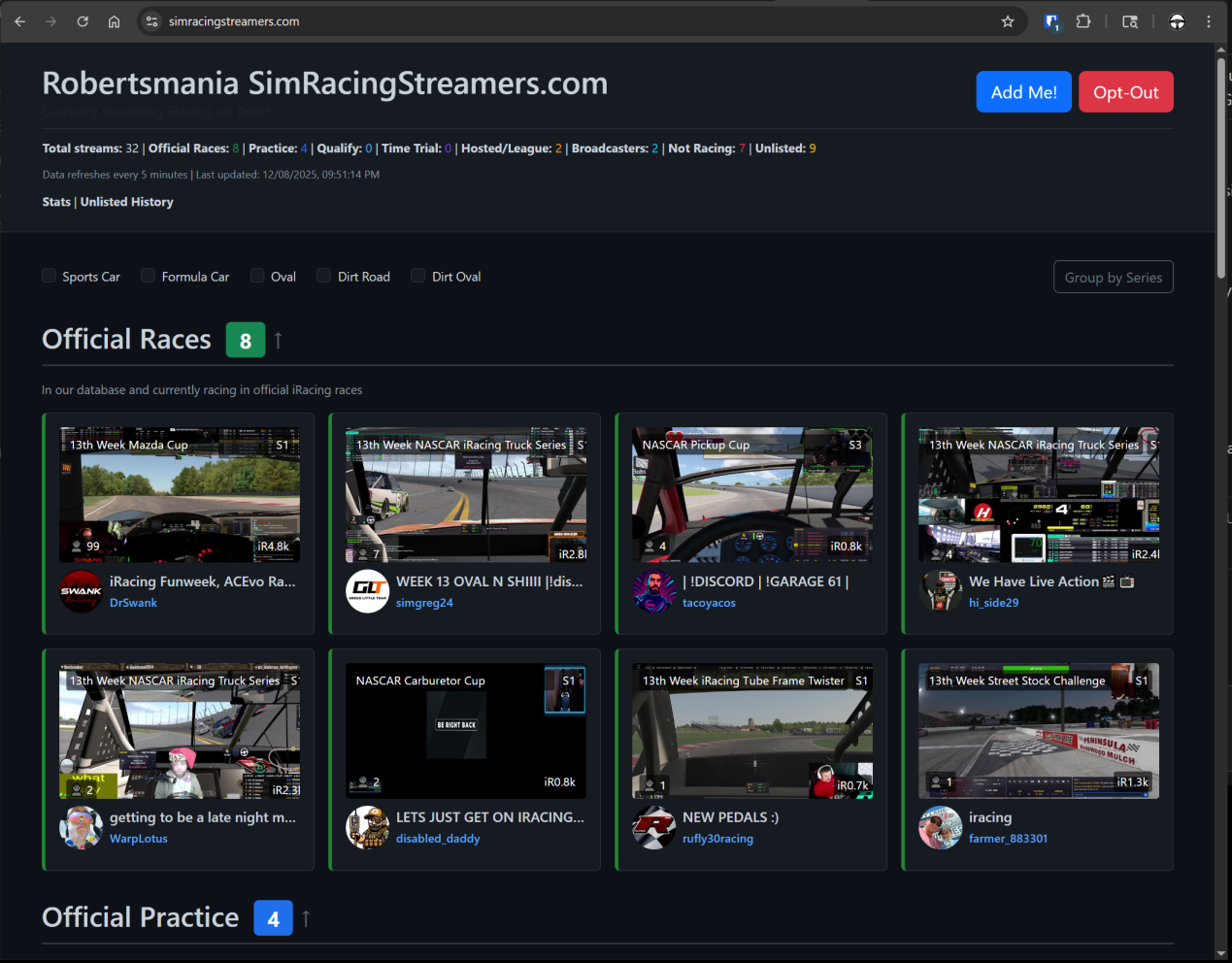 Starting my own project for tracking iRacing Streamers on Twitch.